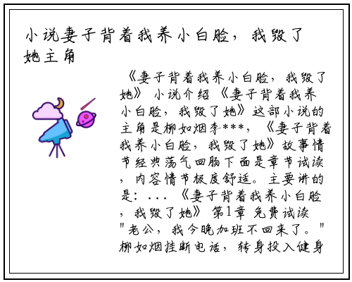 《妻子背着我养小白脸,我毁了她》这部小说的主角是柳如烟李***,《妻子背着我养小白脸,我毁了她》故事情节经典荡气回肠下面是章节试读,内容情节极度舒适。主要讲的是:...