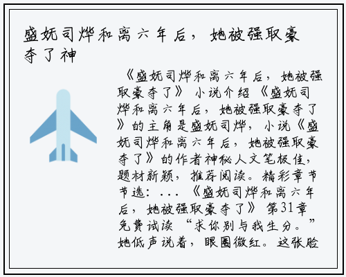 《盛妩司烨和离六年后,她被强取豪夺了》的主角是盛妩司烨,小说《盛妩司烨和离六年后,她被强取豪夺了》的作者神秘人文笔极佳,题材新颖,推荐阅读。精彩章节节选:...