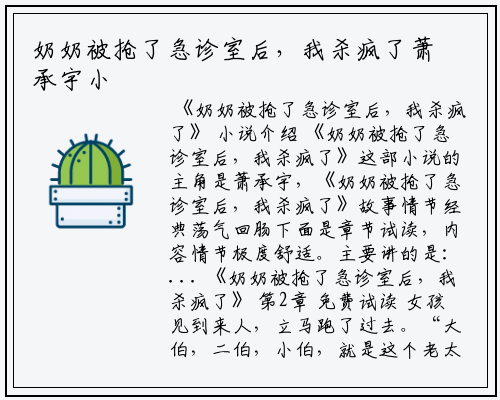 《奶奶被抢了急诊室后,我杀疯了》这部小说的主角是萧承宇,《奶奶被抢了急诊室后,我杀疯了》故事情节经典荡气回肠下面是章节试读,内容情节极度舒适。主要讲的是:...