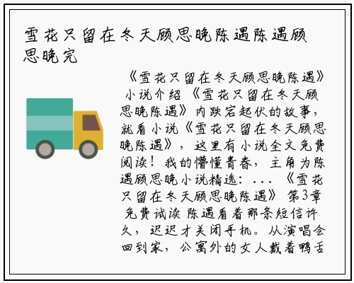 《雪花只留在冬天顾思晚陈遇》内跌宕起伏的故事,就看小说《雪花只留在冬天顾思晚陈遇》,这里有小说全文免费阅读!我的懵懂青春,主角为陈遇顾思晚小说精选:...