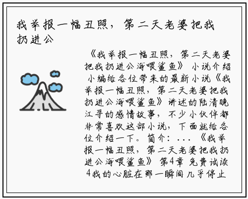 小编给各位带来的最新小说《我举报一幅丑照,第二天老婆把我扔进公海喂鲨鱼》讲述的陆清晚江寻的感情故事,不少小伙伴都非常喜欢这部小说,下面就给各位介绍一下。简介:...