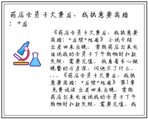 出差回来当晚。 常购药店打来电话说我的会员卡下午购物时扣款失败,需要充值。 我看着专心做晚餐的方彦深,问他买了什么。...