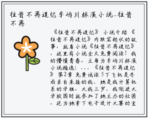 《往昔不再追忆》内跌宕起伏的故事,就看小说《往昔不再追忆》,这里有小说全文免费阅读!我的懵懂青春,主角为季屿川林溪小说精选:...