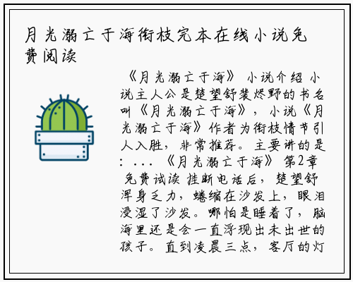 小说主人公是楚望舒裴烬野的书名叫《月光溺亡于海》,小说《月光溺亡于海》作者为衔枝情节引人入胜,非常推荐。主要讲的是:...