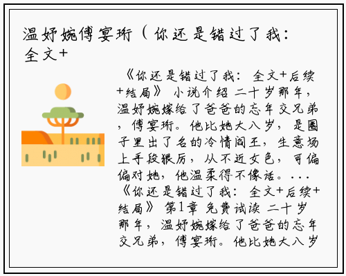 二十岁那年,温妤婉嫁给了爸爸的忘年交兄弟,傅宴珩。他比她大八岁,是圈子里出了名的冷情阎王,生意场上手段狠厉,从不近女色,可偏偏对她,他温柔得不像话。...