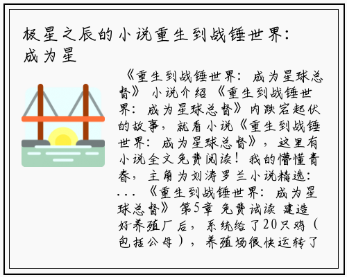 《重生到战锤世界:成为星球总督》内跌宕起伏的故事,就看小说《重生到战锤世界:成为星球总督》,这里有小说全文免费阅读!我的懵懂青春,主角为刘涛罗兰小说精选:...