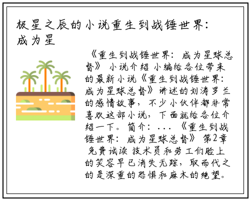 小编给各位带来的最新小说《重生到战锤世界:成为星球总督》讲述的刘涛罗兰的感情故事,不少小伙伴都非常喜欢这部小说,下面就给各位介绍一下。简介:...